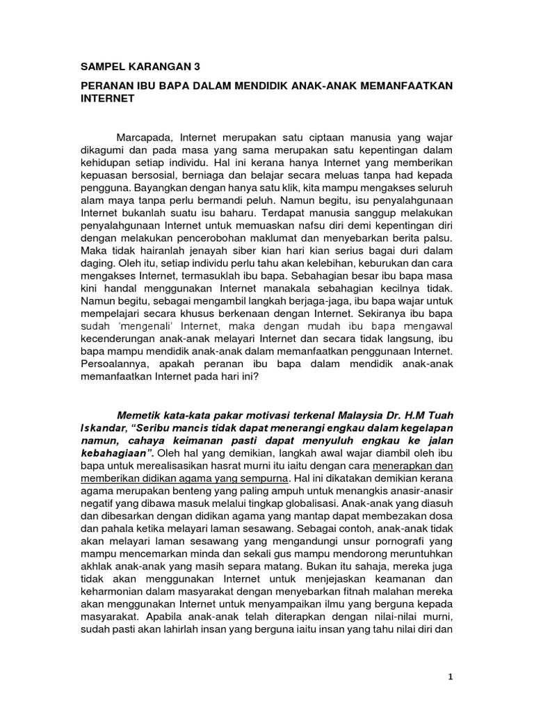 Sampel Karangan 3 Peranan Ibu Bapa Dalam Mendidik Anak Anak Memanfaatkan Internet Pdf